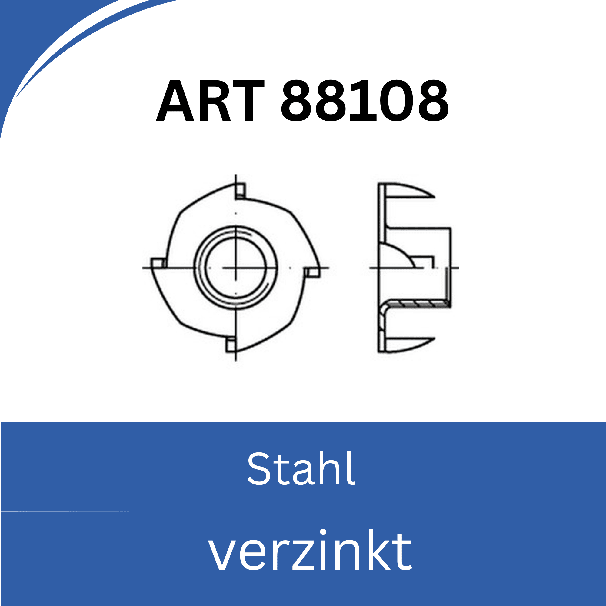 ART 88108 Einschlagmuttern (Holz) – Stahl verzinkt – langlebige, korrosionsgeschützte Krallenmuttern für sichere Gewindeverbindungen in Holz.