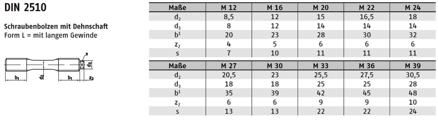 DIN 2510 Dehnschrauben – Schraubbolzen mit Dehnschaft (1.7218 / 1.7711)