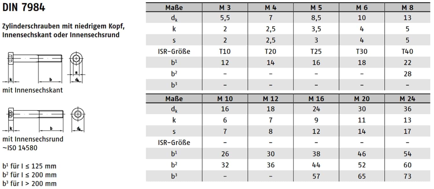 Die Schrauben entsprechen DIN 7984 und werden nach ISO 898-1 geprüft. Jede Schraube erfüllt die Anforderungen der Festigkeitsklassen 10/10.9 und bietet höchste Maßhaltigkeit und Fertigungsqualität.