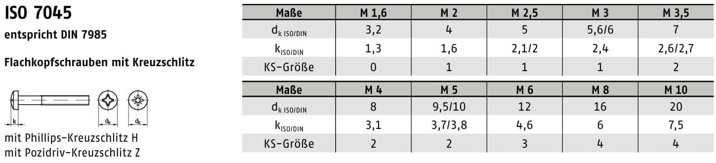 DIN 7985 definiert Form, Kopfhöhen, Kopfdurchmesser, Gewindelängen und Toleranzen von Linsenkopfschrauben mit metrischem Gewinde und Kreuz- bzw. Innensternantrieb. Durch die genormten Maße sind Schrauben verschiedener Hersteller austauschbar und ermöglichen reproduzierbare Montagebedingungen.