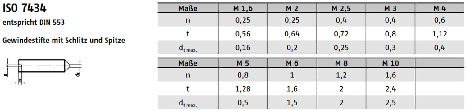 Der Schlitzantrieb ermöglicht eine einfache Installation mit herkömmlichen Werkzeugen. Die Spitze des Gewindestifts sorgt für eine formschlüssige Fixierung oder Justierung und verhindert das Verrutschen oder Verdrehen von Bauteilen – ideal z. B. bei Klemm- oder Justierverbindungen.