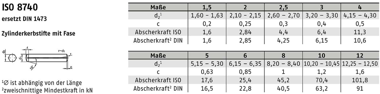 ISO 8740 Stahl 1,5x12 (blank) Zylinderkerbstifte mit Fase - Pkg. (250) ISO 8740 Stahl Zylinderkerbstifte mit Fasen Abmessung: 1,5 x 12 / Diese Zylinderkerbstifte liefern wir im Werkstoff: Stahl sowie der Oberfläche: unveredelt, blank. ➤ Info: Veränderungen zwischen DIN & ISO-Norm: Länge neu nach ISO inkl. Kuppen (bisher nach DIN exkl. Kuppen). Art.-Nr. 1620 1292 0015012 (250) 49,06 € inkl. MwSt. zzgl. Versandkosten Interne Notiz zur Position an uns Merken Gut zu wissen Jetzt anmelden und alle Funktionen nutzen 👤 Anmelden / Registrieren 📞 Fragen? Rufen Sie uns an: +49 7631 10002