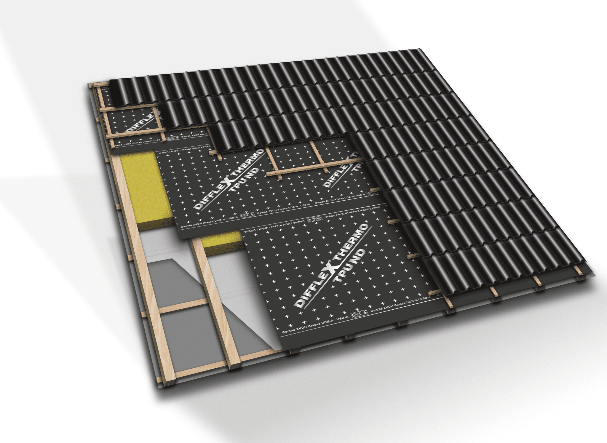 Diffusionsoffene Unterdeckbahn aus spezialgelegtem Polyestervlies mit einseitiger monolithischer TPU-Copolymer		Spezialbeschichtung und doppelter Selbstklebekante.