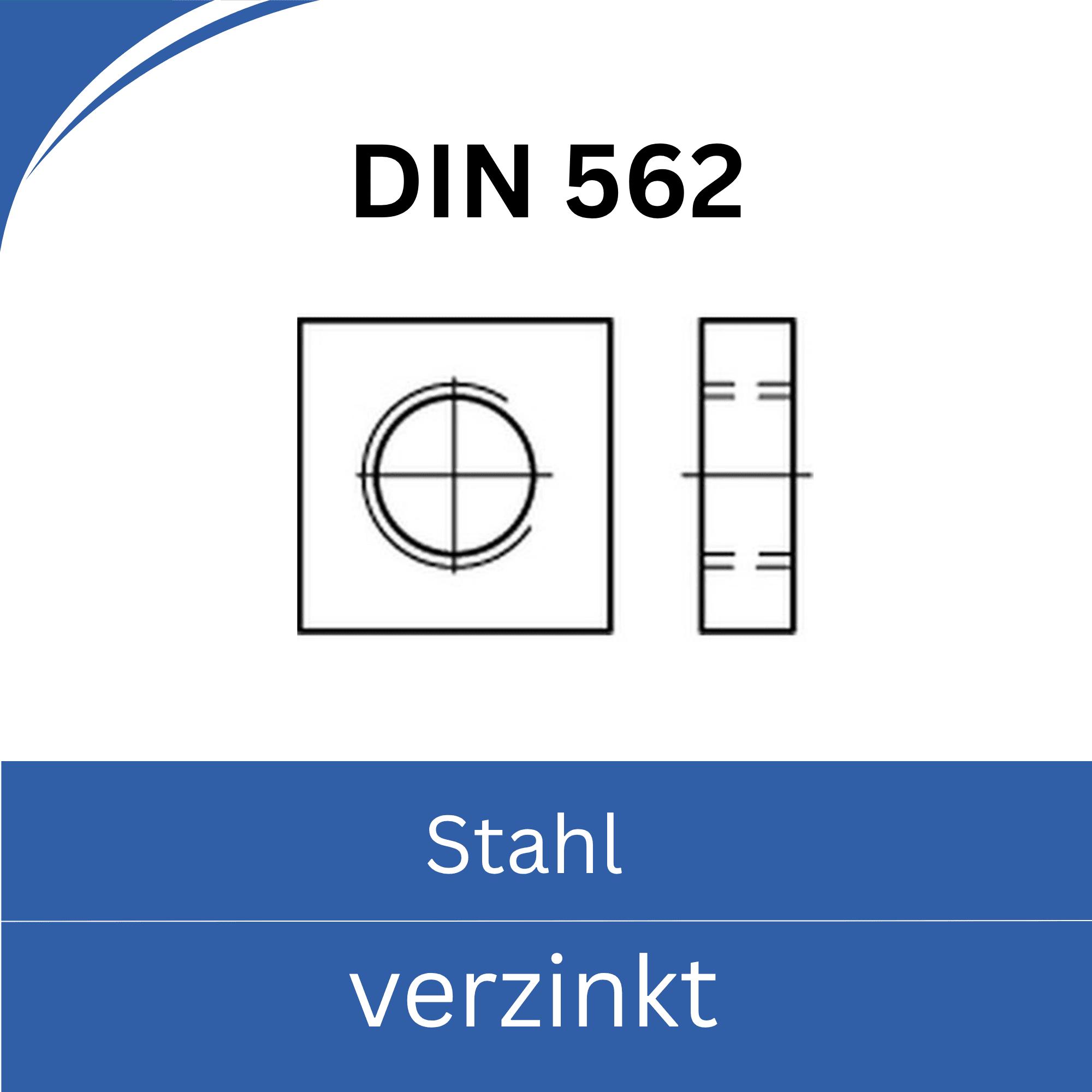 - Norm: DIN 562 – Vierkantmuttern niedrige Form