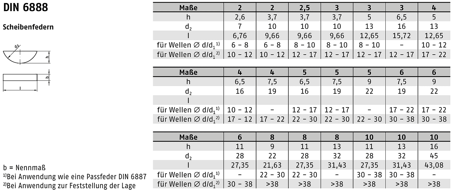 DIN 6888 – Scheibenfedern (Stahl blank) – halbrunde, präzise gefertigte Verbindungselemente für zuverlässige Welle-Nabe-Verbindungen im professionellen Maschinenbau.
