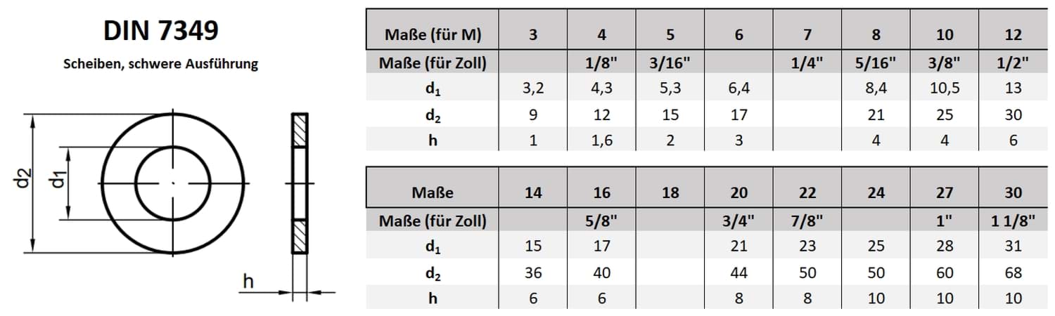 ➤ Unterlegscheiben dicke Ausführung DIN 7349 Stahl blank