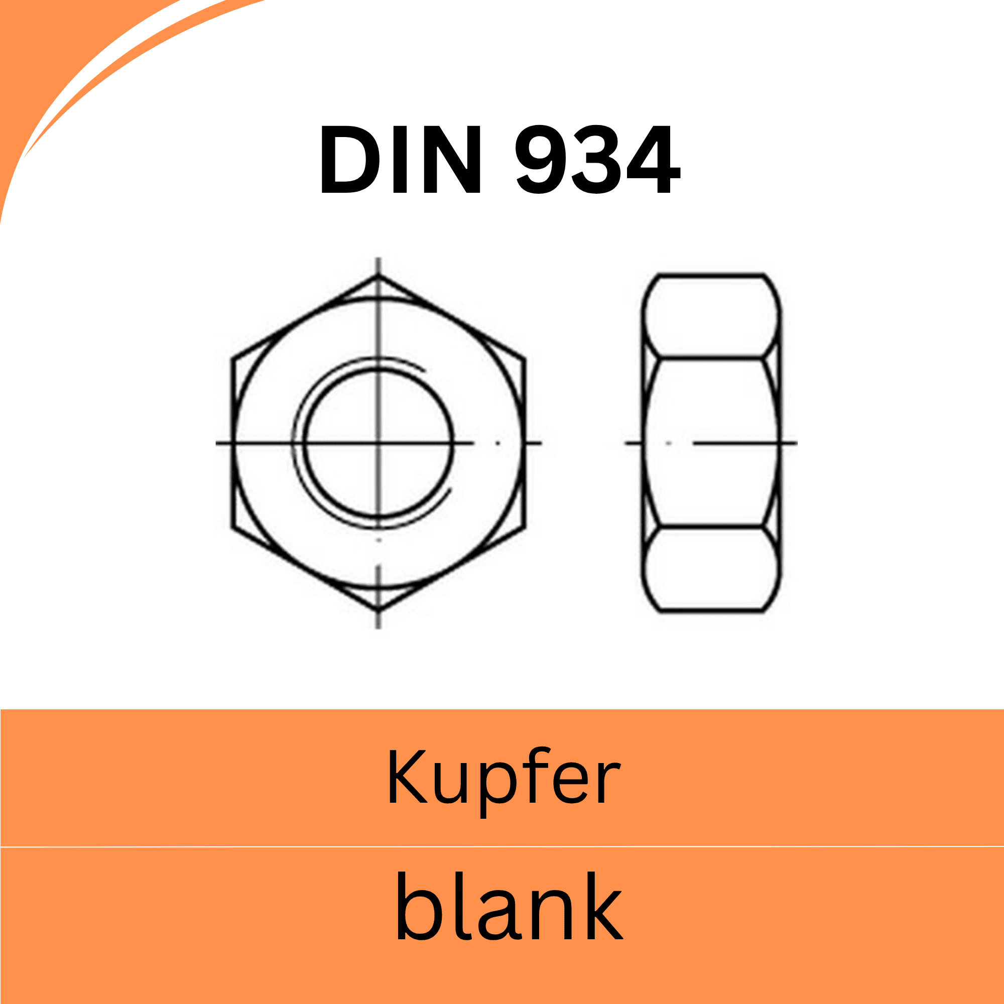 - DIN 934 ➤ Sechskantmuttern (Kupfer blank)