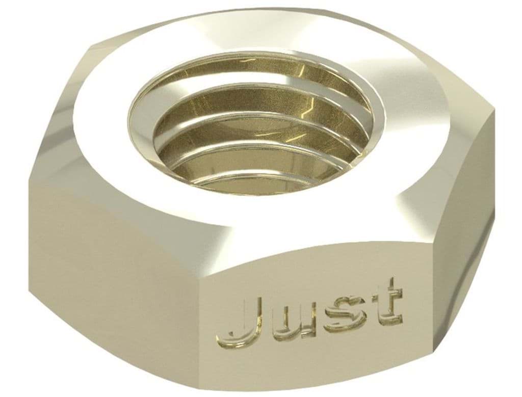 Entspricht DIN 934 (Nachfolgenorm ISO 4032), Gewinde nach ISO 261 / 965-1, Toleranzklasse 6H. Die Vernickelung sorgt für gleichmäßige Oberflächenhärte, reduzierte Reibwerte und verbesserte Beständigkeit gegen Umwelteinflüsse und Fingerabdrücke.