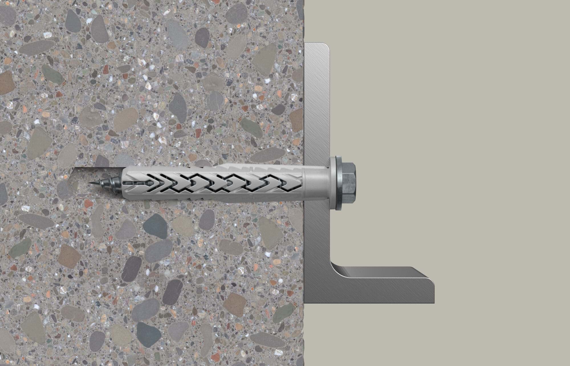 Vorteile: Der SXRL mit Sechskant-Sicherheitsschraube und angeformter Unterlegscheibe ist für Mehrfachbefestigungen in Beton, Mauerwerk und Porenbeton zugelassen. Je nach Durchmesser stehen bis zu drei Verankerungstiefen zur Verfügung. In Lochstein arbeiten zwei Spreizzonen stegschonend; in Voll- und Porenbeton bilden sie ein langes Spreizelement mit gleichmäßiger Lastverteilung. Die langen Rippen sichern das Tiefersetzen gegen Mitdrehen. Die Sechskant-Schraube ist besonders für Metallkonstruktionen geeignet.