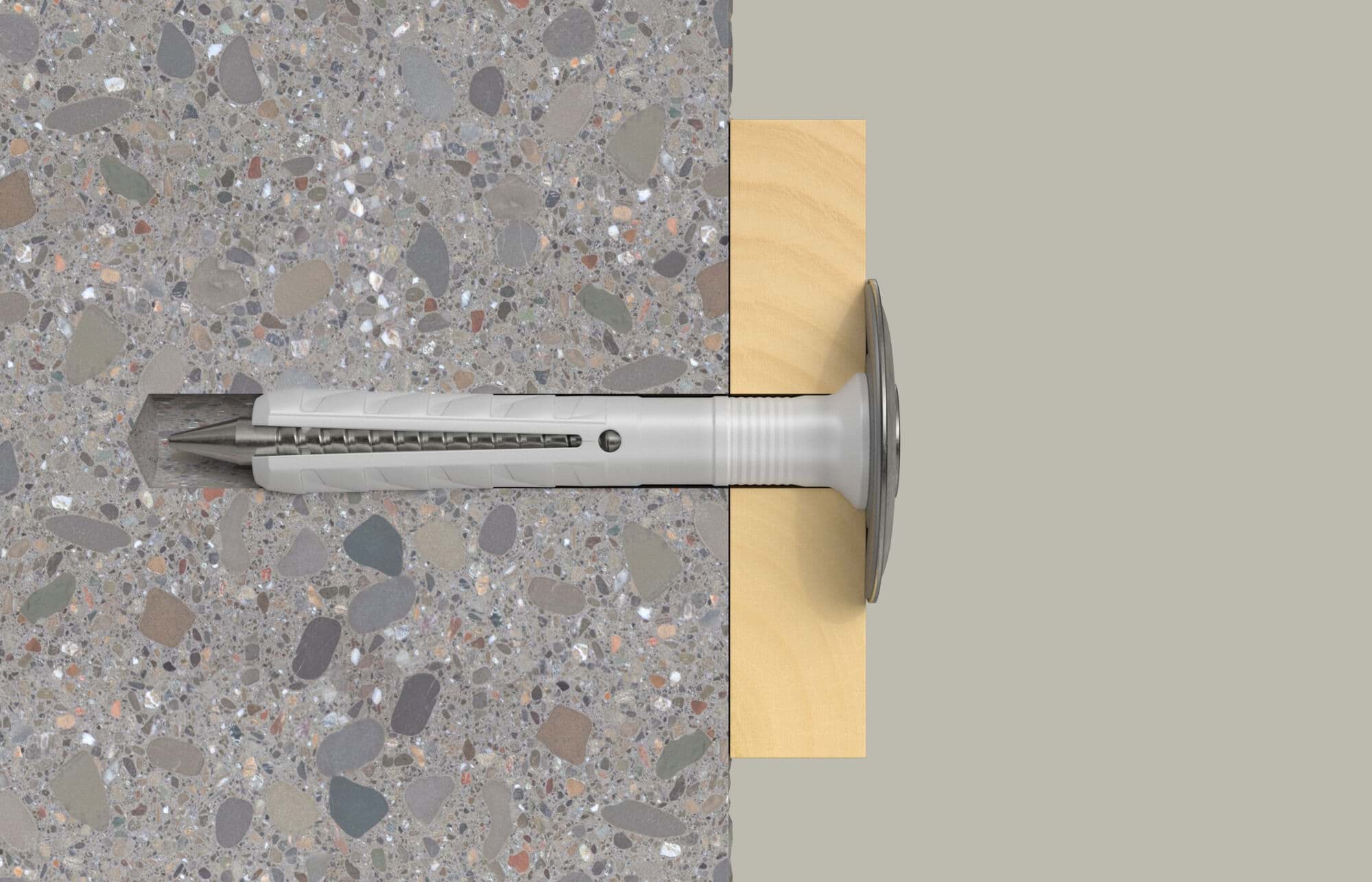 Vorteile: Der vormontierte N-S D besteht aus einer Nylonhülse und einer nicht rostenden Nagelschraube – zusätzlich mit vorgelagerter Dichtscheibe. Für die schnelle Durchsteckmontage wird der Dübel durchs Anbauteil geführt und eingeschlagen; die Hülse spreizt zweifach und verankert sicher. Die Einschlagsperre verhindert vorzeitiges Aufspreizen, das Schraubgewinde mit Kreuzschlitzaufnahme erlaubt das spätere Ausdrehen. Ideal für Putz- und Wandanschlüsse, Bleche und Folien – besonders im Außen- und Sichtbereich.