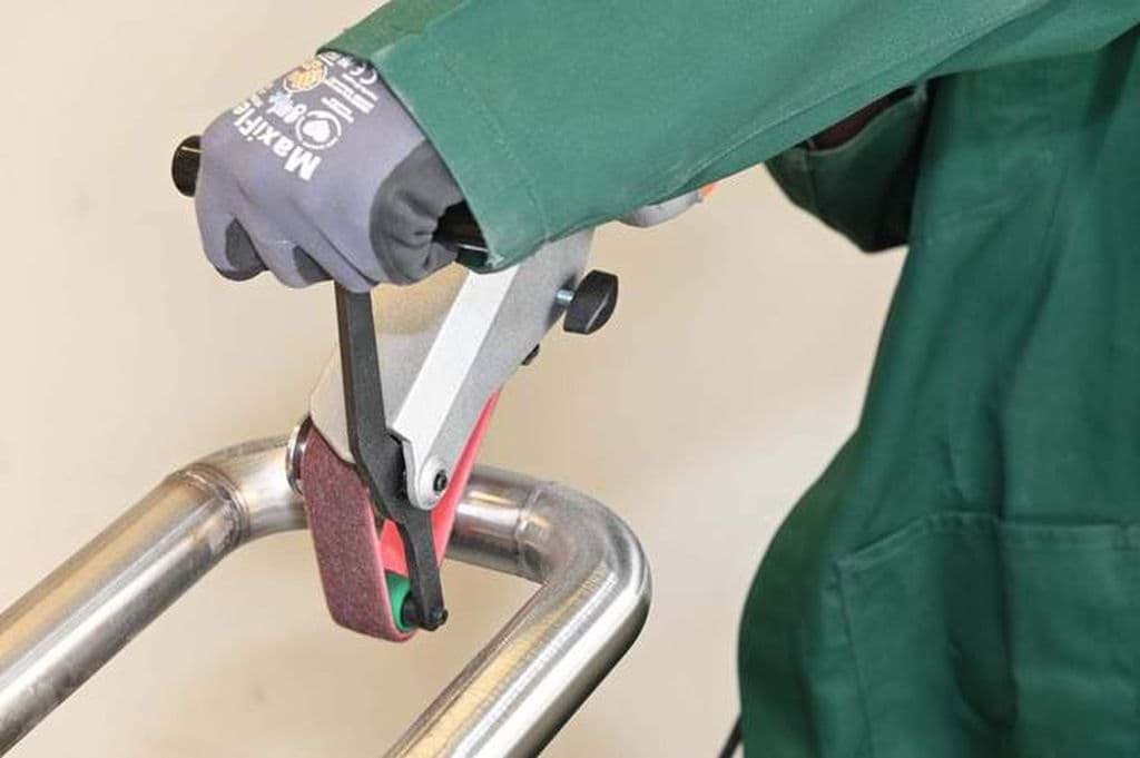 Für NE-Metalle und rostfreie Stähle zum Finishen, Mattieren und Überblenden mit sehr geringer Rautiefe; auch zum Entfernen von Anlauffarben, Farbschichten, Flugrost und zum Ausbessern leichter Oberflächenschäden.