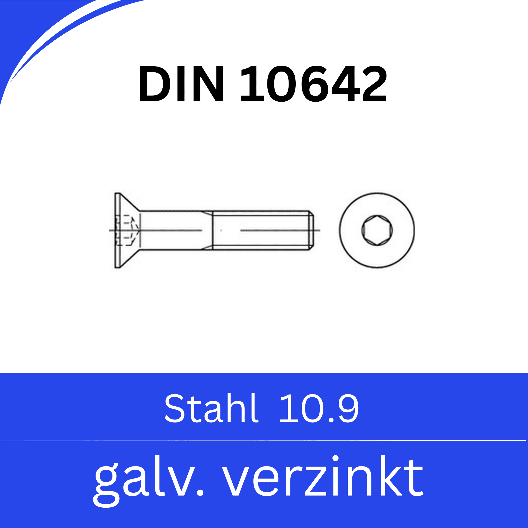 ISO 10642 Senkkopfschrauben mit Innensechskant 10.9 verzinkt (DIN 7991)