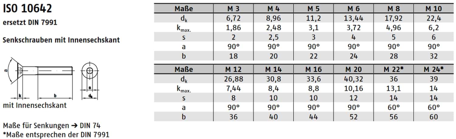 ISO 10642 Senkkopfschrauben mit Innensechskant 8.8 Zinklamelle 720H (DIN 7991)