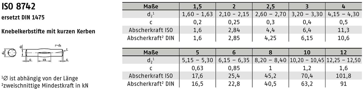 Knebelkerbstifte DIN 1475 / ISO 8742 Stahl blank – schnelle und leicht lösbare Fixierungslösung für Montage- und Wartungstechnik.