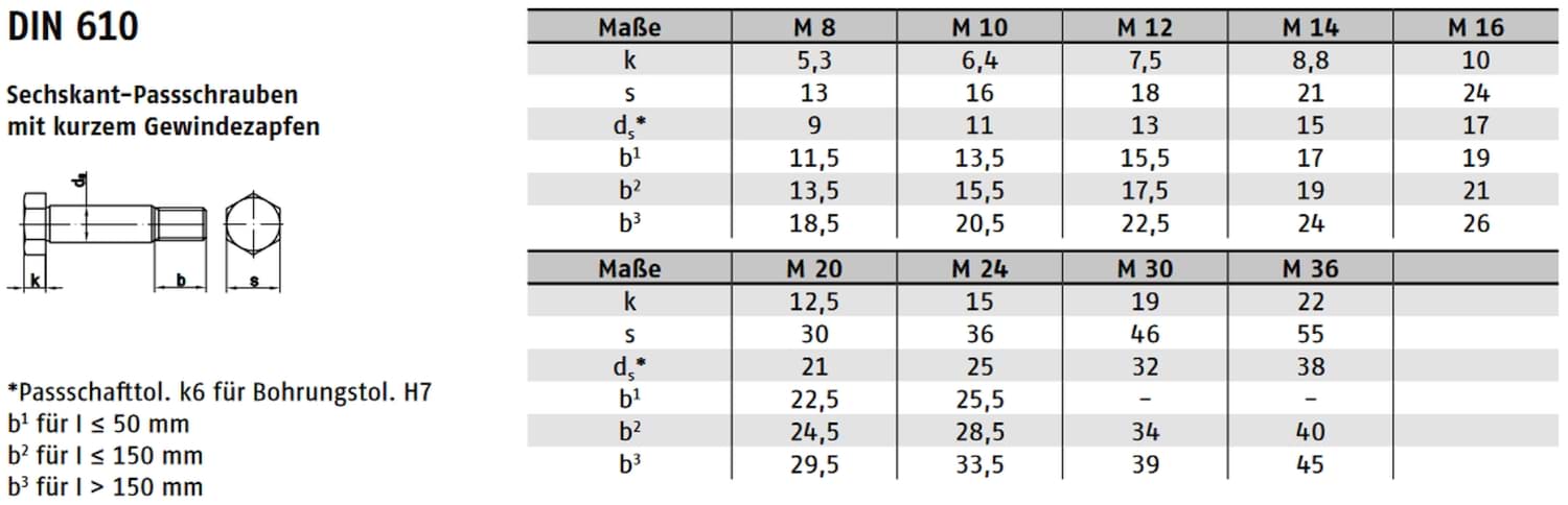 DIN 610 – Passschrauben mit kurzem Gewindezapfen (Stahl 8.8, blank) – präzise, hochfeste Verbindungselemente für den Maschinen- und Vorrichtungsbau mit exakter Passung.