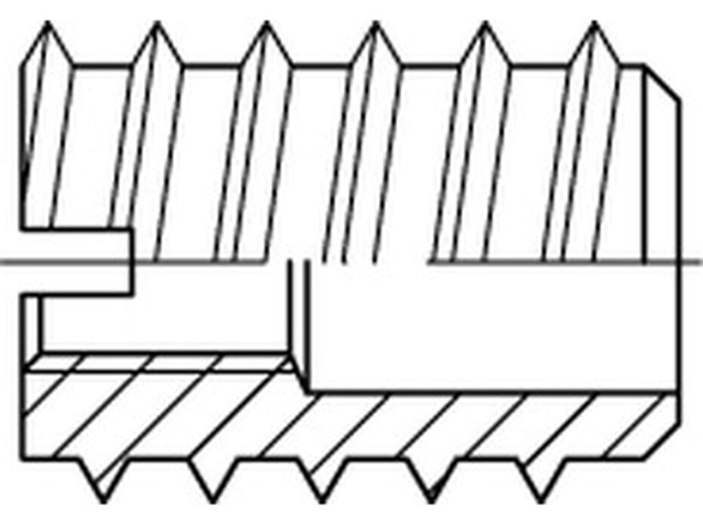 Die Rampamuffe besitzt ein metrisches Innengewinde sowie ein scharf geschnittenes Außengewinde, das sich zuverlässig in Holz und Holzwerkstoffe einschneidet. Dadurch entsteht ein fest sitzender Gewindepunkt, der wiederholtes Montieren und Demontieren von Schrauben erlaubt, ohne das Material zu beschädigen.