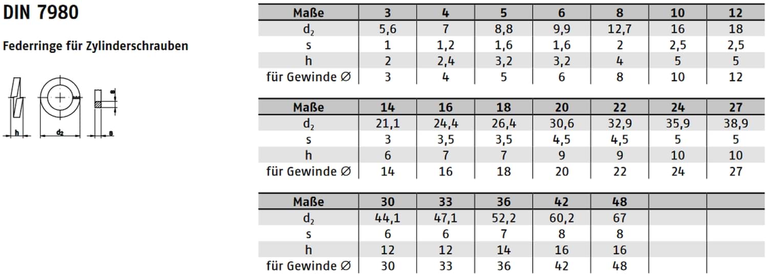 - Bauform: Kategorie: DIN 7980 ➤ Federringe für Zylinderschrauben