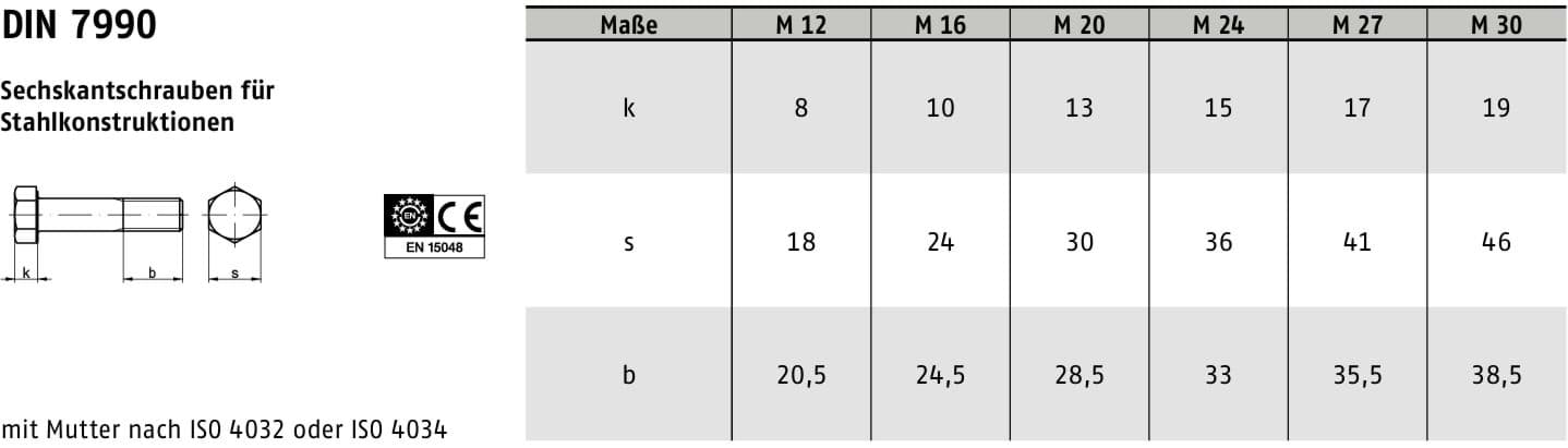 - DIN 7990 ➤ Sechskant-Schrauben für Stahlkonstruktionen - Stahlbau