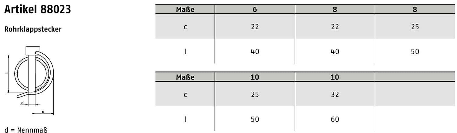 ART 88023 Rohrklappstecker Stahl verzinkt – robuste, langlebige und korrosionsgeschützte Lösung zur sicheren Fixierung von Rohren oder Achsen im Maschinen- und Stahlbau.