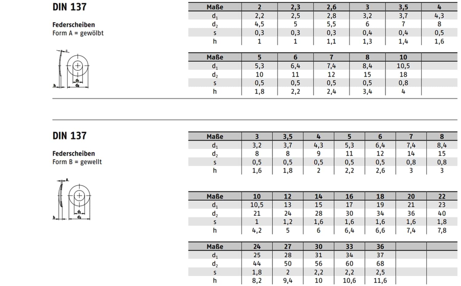 In diesem Gruppenprodukt sind beide Formen der DIN 137 enthalten: Form A (leichte Wölbung, geringere Federkraft) und Form B (stärkere Wölbung, höhere Federkraft). So können Sie je nach Anwendung die passende Federcharakteristik wählen, ohne zwischen unterschiedlichen Produktseiten wechseln zu müssen.