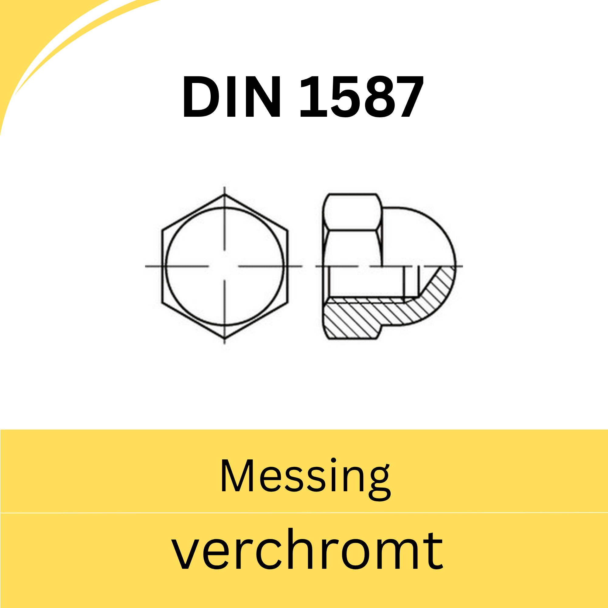 DIN 1587 – Sechskant-Hutmuttern • hohe Form (Messing verchromt)
