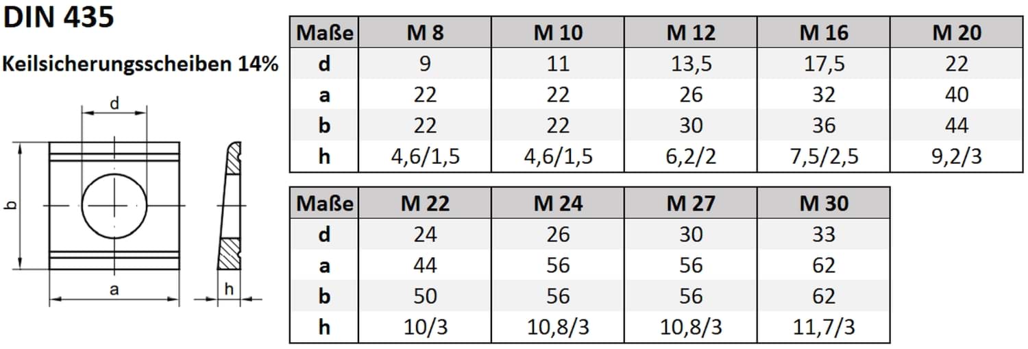 ➤ Keilscheiben für T-Träger -14% Neigung DIN 435 Stahl blank
