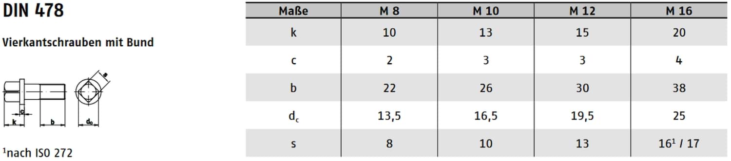 - DIN 478 ➤ Vierkantschrauben mit Bund