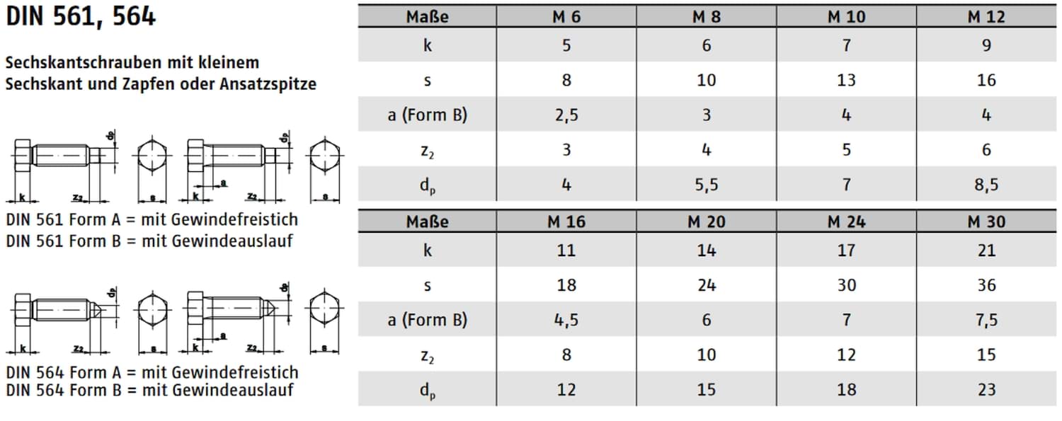 DIN 564 – Sechskantschrauben mit Ansatz (Stahl 8.8 blank) – präzise, hochfest und ideal für exakte Zentrier- und Montageverbindungen.