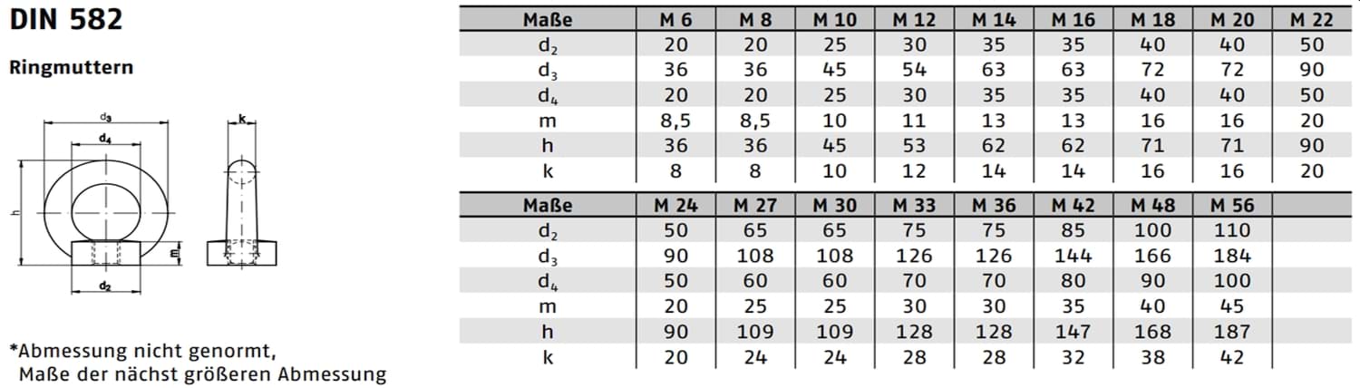 DIN 582 Ringmuttern C15 Stahl blank – robuste Lastaufnahmepunkte für Hebetechnik, Transport und Anschlagmittel in Industrie, Werkstatt und Maschinenbau.