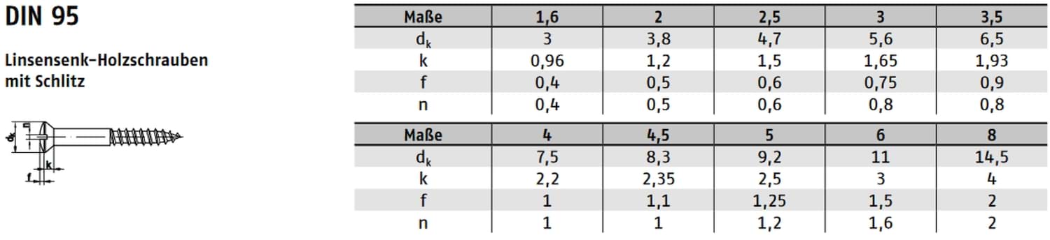 - Bauform: Holzschrauben mit Schlitz