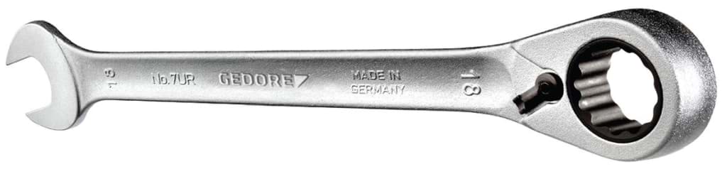 Gedore - Maulschlüssel mit Ringratsche, umschaltbar, 19mm Mit gleichen Schlüsselweiten, UD-Profil, Hohe Drehmomentübertragung, Chrom-Vanadium-Stahl 31CrV3, Blendfrei-Optik durch mattes Verchromen, Sperreinsatz und Sperrklinke manganphosphatiert, Glühend geschmiedet, Maul: präzise auf exaktes Nennmaß geschliffen für optimale Kontaktflächen, Mit Adapter No. 7 RA oder No. 7 RB (bitte separat bestellen) wird der No. 7 UR zur (Bit-)Knarre, Ringseite 13° abgewinkelt, umschaltbar, Mit Maulschlüssel mit Ringratsche No. 7 R für ratschendes Lösen oder Schnellanzug, Handsympathische Haptik durch taillierten Schaft, Handsympathische Haptik durch taillierten Schaft, Verwindungssteife Geometrie mit Doppel-T-Träger Effekt Art.-Nr. 3955 435 1 0425 49,81 € inkl. MwSt. zzgl. Versandkosten Merken Gut zu wissen Jetzt anmelden und alle Funktionen nutzen 👤 Anmelden / Registrieren 📞 Fragen? Rufen Sie uns an: +49 7631 10002