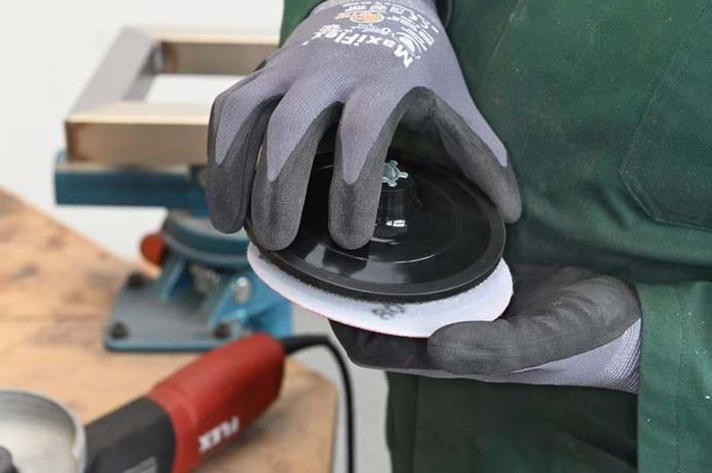 Bei sensiblen Oberflächen ein weiches Pad wählen und mit geringem Druck arbeiten; für hohen Abtrag hart nutzen und die Scheibe flach führen. Klettflächen stets sauber und staubfrei halten – das verlängert die Haftung.