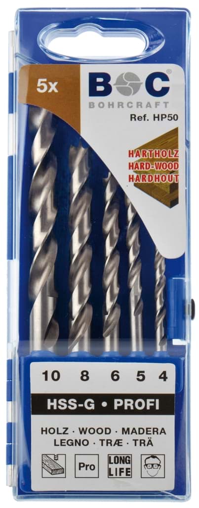 Holzspiralbohrer Profi HSS-G Kunststoff-Kassette 5-tlg. 4 / 5 / 6 / 8 / 10 mm / HP50