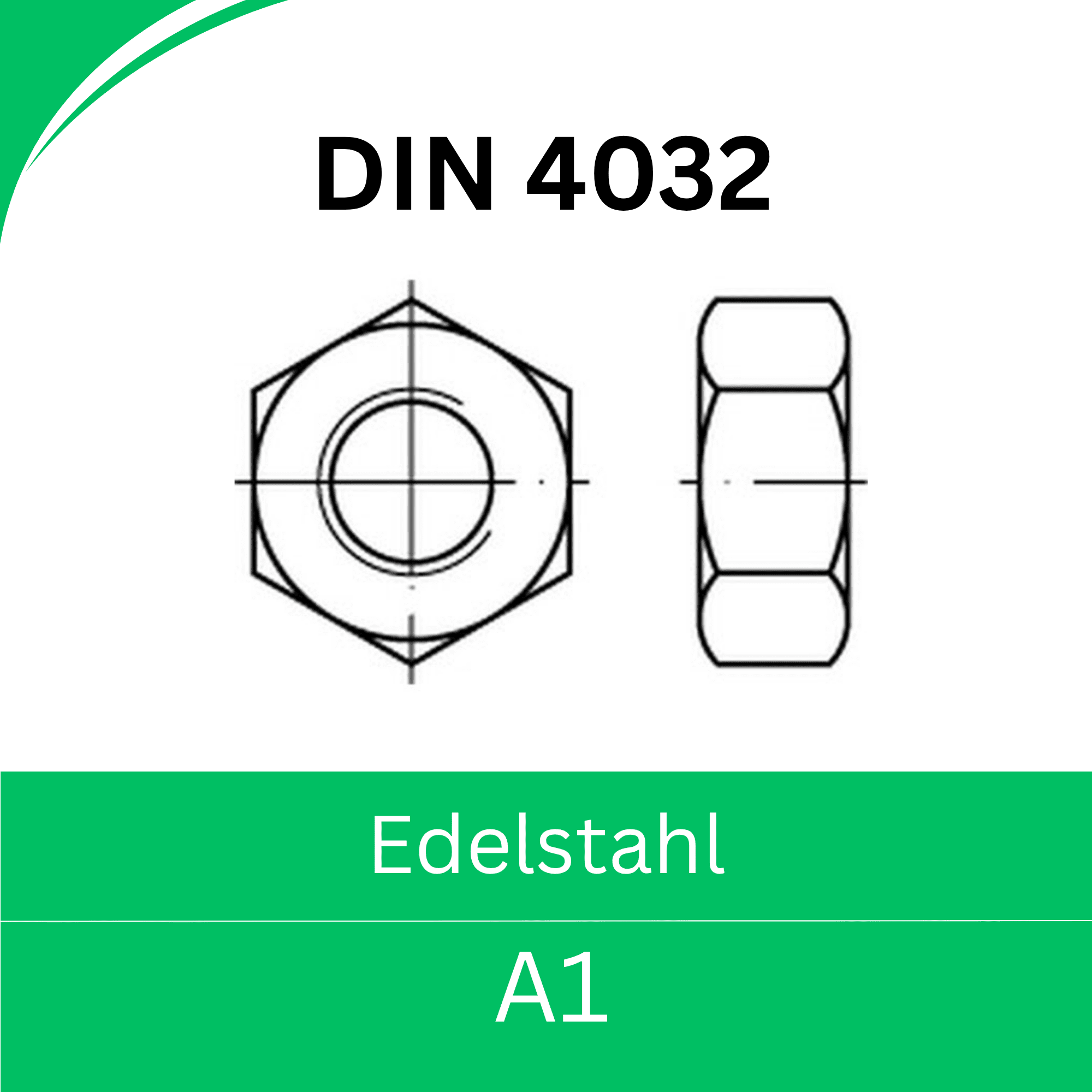 Die ISO 4032 Mutter aus Edelstahl A1 ist eine Sechskantmutter mit metrischem ISO-Gewinde nach ISO 261. Sie besitzt im Vergleich zur alten DIN 934 reduzierte Schlüsselweiten und erfüllt alle gängigen Anforderungen an Passgenauigkeit und Festigkeit im leichten bis mittleren Einsatzbereich.