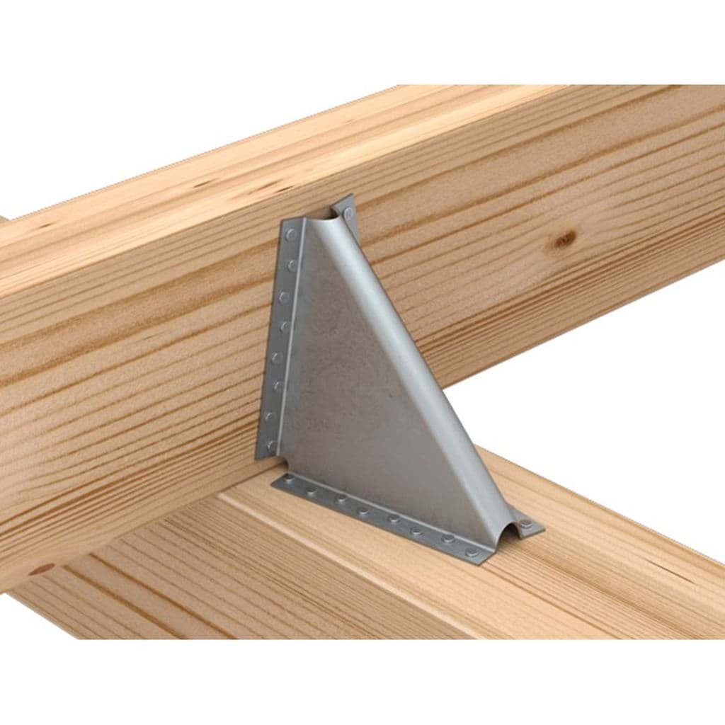 Die GH Knagge dient als Kippsicherung von Sparrenpfetten auf steilen Dächern. Durch ihre robuste Bauweise und einfache Montage verhindert sie ein seitliches Kippen oder Abheben der Bauteile und gewährleistet eine dauerhafte Stabilität der Dachkonstruktion.