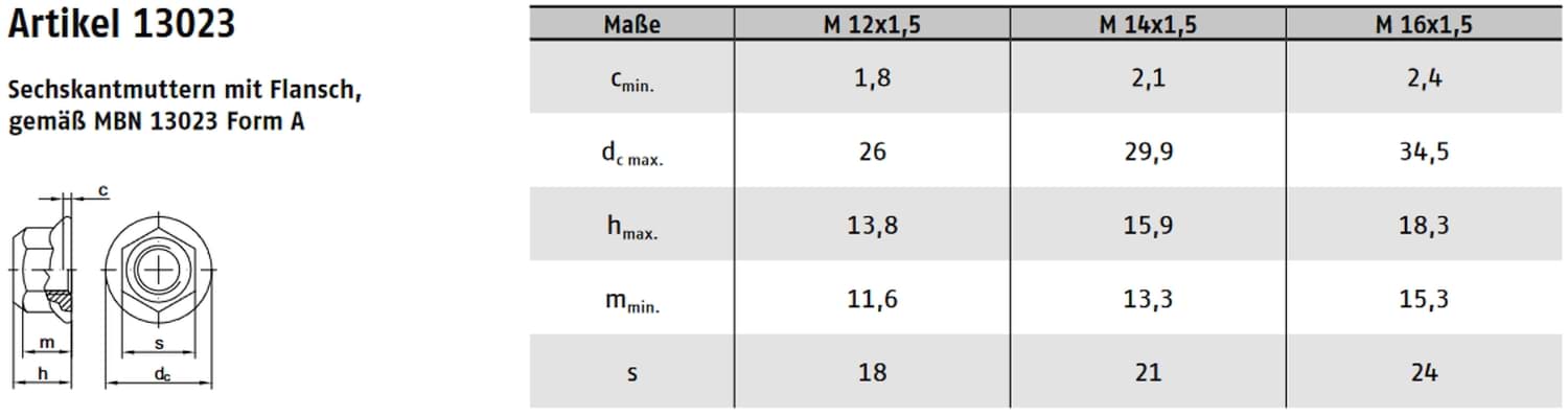 - Besondere Form / Funktion: Flanschmutter mit vergrößerter Auflagefläche