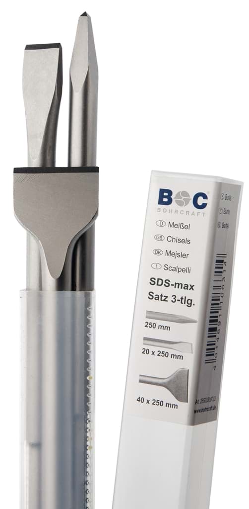 - 3-teilig: Spitzmeißel · Flachmeißel · Spatmeißel