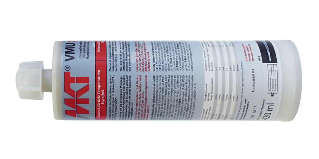 MKT Injektionsmörtel - VMU-plus 300 POLAR+VM-X Das Injektionssystem VMU plus ist ein universelles Injektionssystem für fast alle Anwendungen und Baustoffe. Neben der Verwendung im ungerissenen Beton und Mauerwerk ist der VMU plus auch fürBefestigungen im gerissenen Beton und für nachträglichen Bewehrungsanschluss1) bauaufsichtlich zugelassen. Die Mauerwerksbewertung ETA-13/0909 umfasst 6 Siebhülsen mit bis zu 200 mm Länge und ermöglicht den zugelassenen Einsatz in 15 verschiedenen Mauerwerksarten. Als Verankerungselemente dienen verschiedene Ankerstangen oder Innengewindestangen aus dem bestehenden MKT-Sortiment (VMU-A, VMU-IG, VM-A und V-A), handelsübliche Gewindestangen mit Festigkeitsnachweis oder Bewehrungsstäbe. In Lochsteinmauerwerk wird zusätzlich eine Siebhülse benötigt. Die Wahlmöglichkeit zwischen den Injektionsmörteln VMU plus und VMU plus Polar ermöglicht für Bohrloch und Kartuschen Verarbeitungstemperaturen von -20°C bis +40°C. Art.-Nr. 1995 109 300 20,80 € inkl. MwSt. zzgl. Versandkosten Merken Gut zu wissen Jetzt anmelden und alle Funktionen nutzen 👤 Anmelden / Registrieren 📞 Fragen? Rufen Sie uns an: +49 7631 10002
