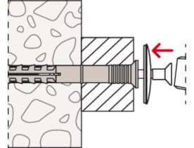 Vorteile: Der vormontierte N-S D besteht aus einer Nylonhülse und einer nicht rostenden Nagelschraube – zusätzlich mit vorgelagerter Dichtscheibe. Für die schnelle Durchsteckmontage wird der Dübel durchs Anbauteil geführt und eingeschlagen; die Hülse spreizt zweifach und verankert sicher. Die Einschlagsperre verhindert vorzeitiges Aufspreizen, das Schraubgewinde mit Kreuzschlitzaufnahme erlaubt das spätere Ausdrehen. Ideal für Putz- und Wandanschlüsse, Bleche und Folien – besonders im Außen- und Sichtbereich.