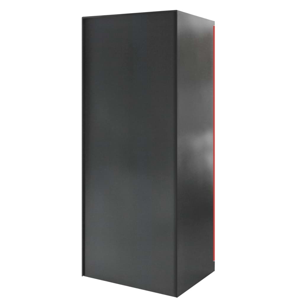 Der Schrank besteht aus hochwertigem Stahlblech und ist pulverbeschichtet in RAL 7016 (Anthrazitgrau) für den Korpus sowie RAL 3000 (Feuerrot) für die Türen. Die widerstandsfähige Oberfläche ist kratzfest, korrosionsbeständig und für den dauerhaften Einsatz im Industriealltag ausgelegt.
