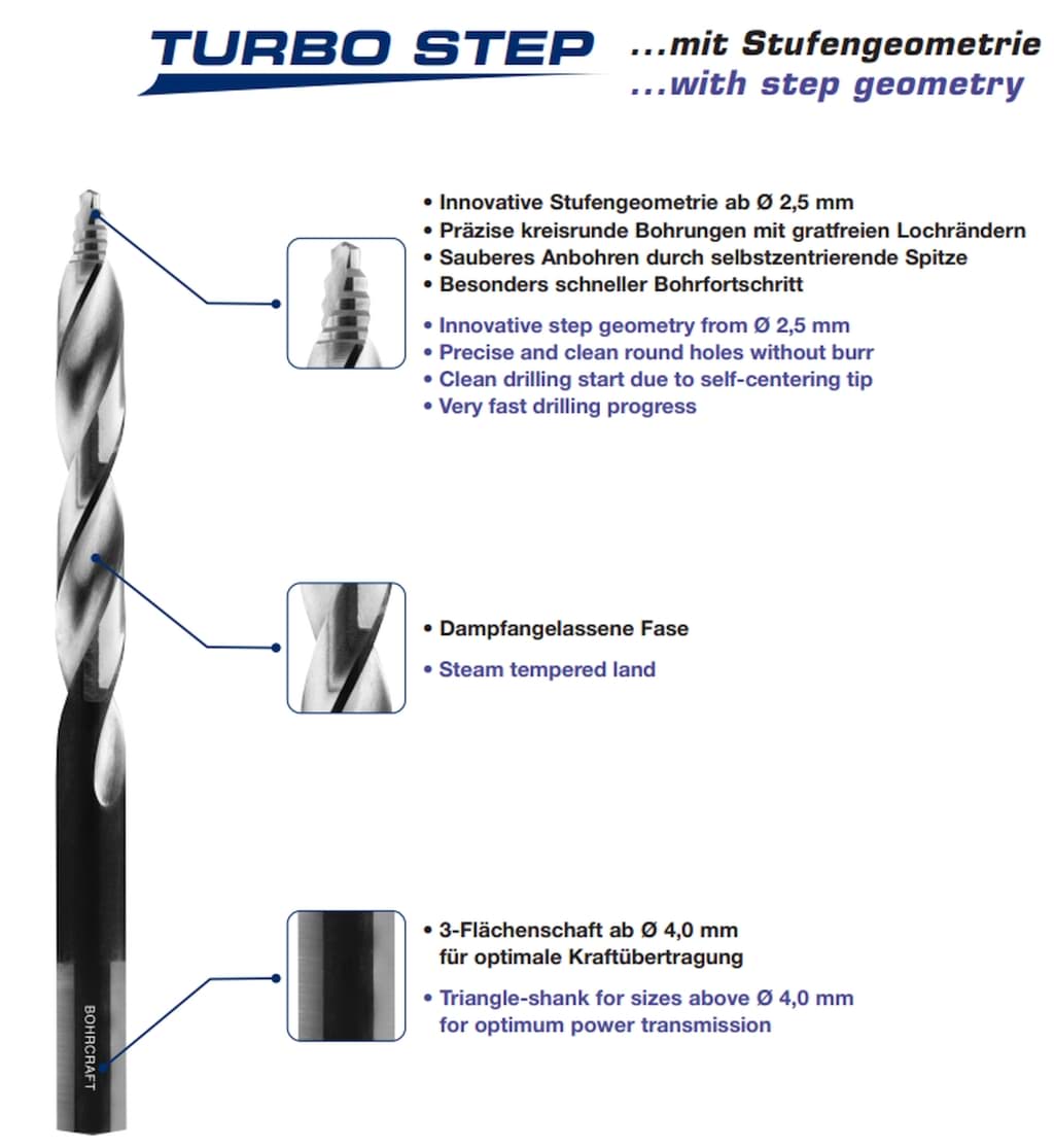 Spiralbohrer DIN 338 HSS-G geschliffen - 3,0 mm - TURBO STEP P-PLUS (VE = 10 Bohrer) Innovative Stufengeometrie ab Ø 2,5 mm / Präzise kreisrunde Bohrungen mit gratfreien Lochrändern / Sauberes Anbohren durch selbstzentrierende Spitze / Besonders schneller Bohrfortschritt / Dampfangelassene Fase / der Spiralbohrer hat einen Durchmesser von: 3,0 mm sowie eine Gesamtlänge von: 61 mm und einer daraus resultierenden Arbeitslänge von: 33 mm Art.-Nr. 5000 12020300300 27,85 € inkl. MwSt. zzgl. Versandkosten Interne Notiz zur Position an uns Merken Gut zu wissen Jetzt anmelden und alle Funktionen nutzen 👤 Anmelden / Registrieren 📞 Fragen? Rufen Sie uns an: +49 7631 10002