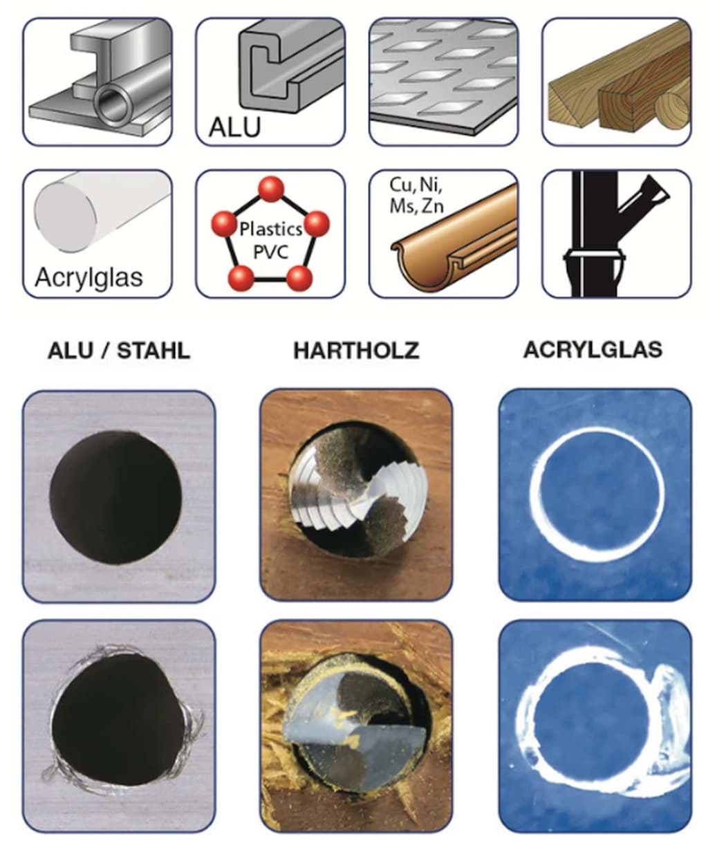 Spiralbohrer DIN 338 HSS-G geschliffen - 1,5 mm - TURBO STEP P-PLUS (VE = 10 Bohrer) Innovative Stufengeometrie ab Ø 2,5 mm / Präzise kreisrunde Bohrungen mit gratfreien Lochrändern / Sauberes Anbohren durch selbstzentrierende Spitze / Besonders schneller Bohrfortschritt / Dampfangelassene Fase / der Spiralbohrer hat einen Durchmesser von: 1,5 mm sowie eine Gesamtlänge von: 40 mm und einer daraus resultierenden Arbeitslänge von: 18 mm Art.-Nr. 5000 12020300150 14,88 € inkl. MwSt. zzgl. Versandkosten Interne Notiz zur Position an uns Merken Gut zu wissen Jetzt anmelden und alle Funktionen nutzen 👤 Anmelden / Registrieren 📞 Fragen? Rufen Sie uns an: +49 7631 10002
