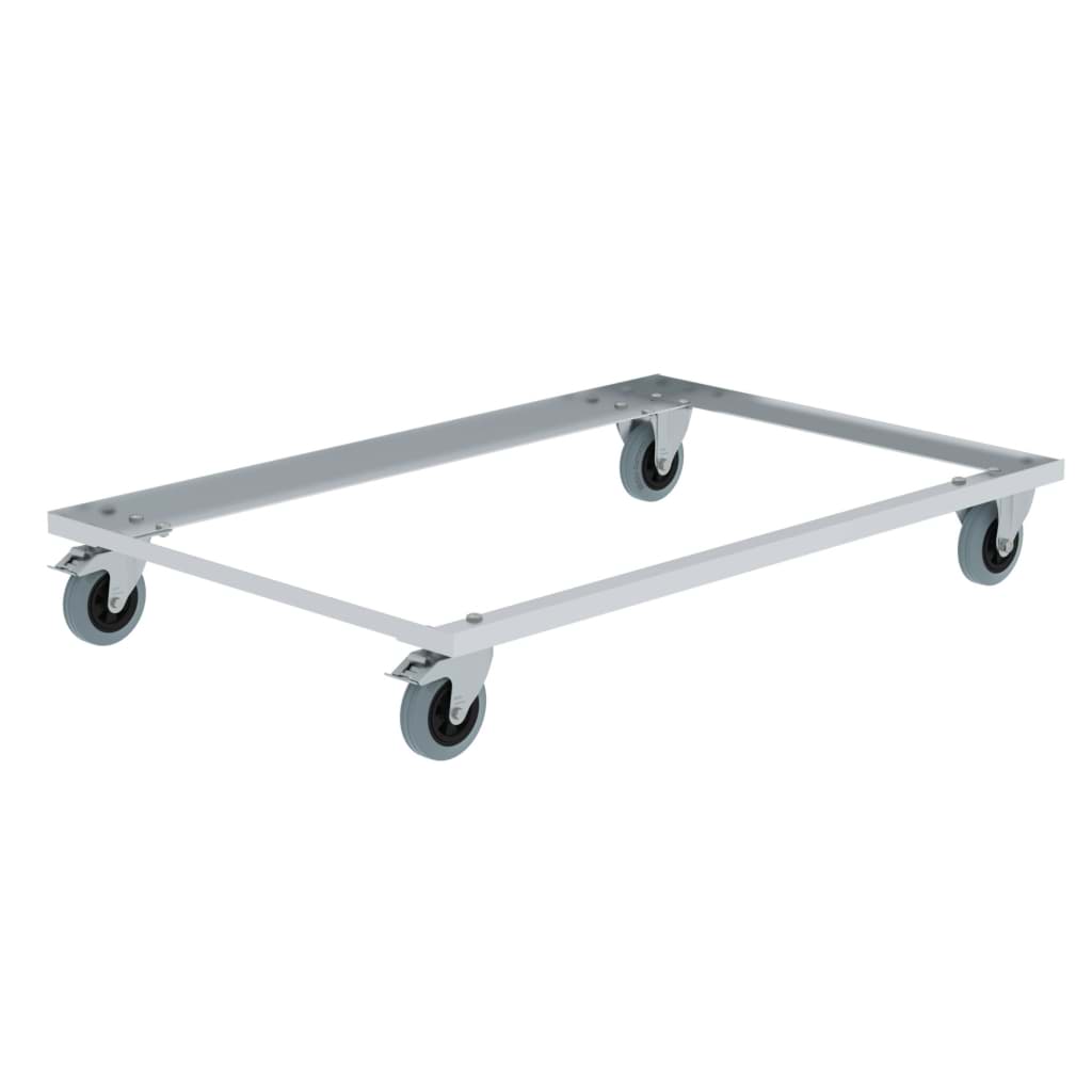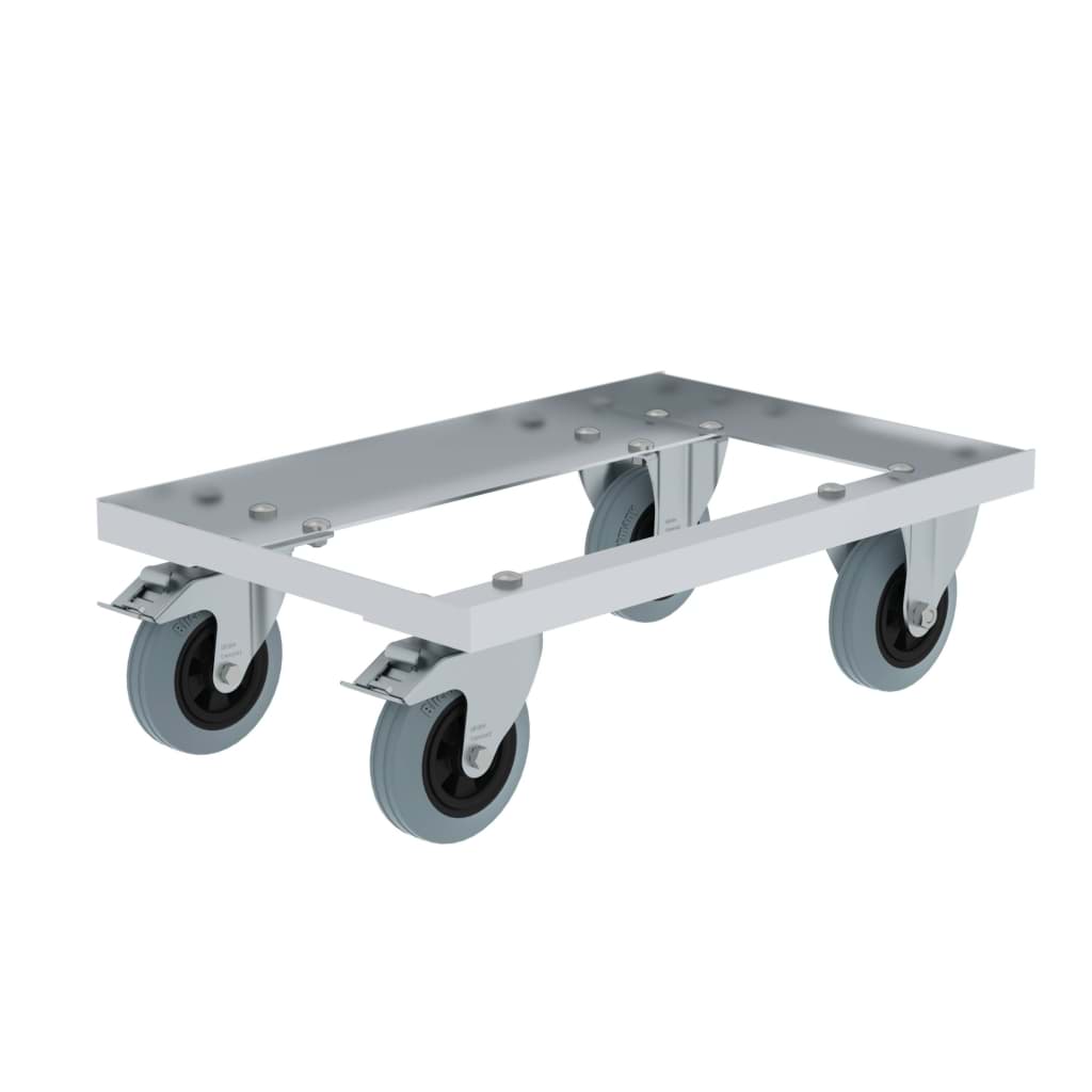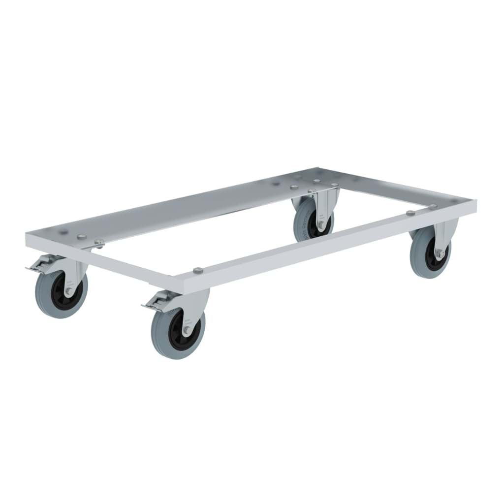 Die Untersetzwagen aus stabilen Aluminium-Profilen ermöglichen das einfache und ergonomische Verfahren von Aluminium-Transportkisten. Dank zweier Bockrollen und zweier Lenkrollen mit Ø 125 mm lassen sich die Wagen sicher, wendig und laufruhig bewegen. In verschiedenen Größen erhältlich – abgestimmt auf die jeweiligen Transportkistenmodelle.